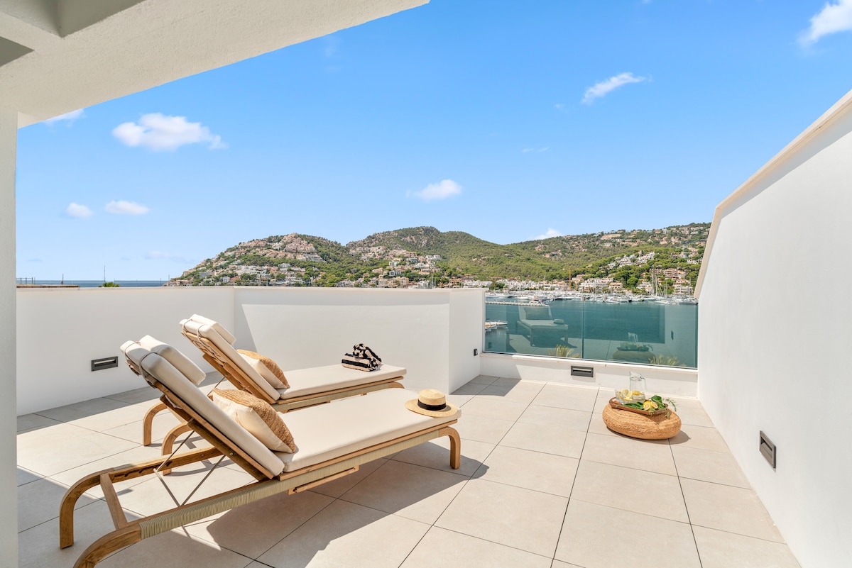 Komplett neu und hochwertig Der ⛰Panoramablick auf die Berge. Loft mit großer 20 m ² Terrasse, um die Sonne und das Geräusch von Meereswellen bei Nacht und einem klaren Himmel zu genießen. Privilegierte Lage, auf der gleichen Straße wie eines der luxuriösesten Hotels in Europa, das Hotel Jumeirah. In der Nähe haben wir einen Eingang zum Wandern, Restaurants, Café's und Bars. Etwa 5 Gehminuten entfernt haben wir die Playa de Puerto de Soller mit der nahegelegenen Passage des Soller Train