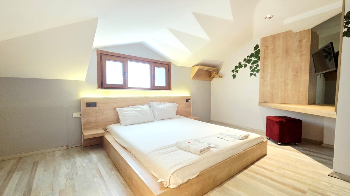 Tarihi dokusu korunarak özenle dekore edilmiş bu benzersiz oda, modern konfor ile nostaljik atmosferi bir araya getiriyor. Özel tasarım ahşap mobilyalar, sıcak aydınlatma ve özgün duvar detayları ile keyifli bir konaklama deneyimi sunuyor. İstiklal Caddesi’ne sadece 1 dakika, metroya ise 3 dakika yürüme mesafesinde bulunan bu oda, şehrin enerjisini keşfetmek isteyenler için harika bir seçenek.