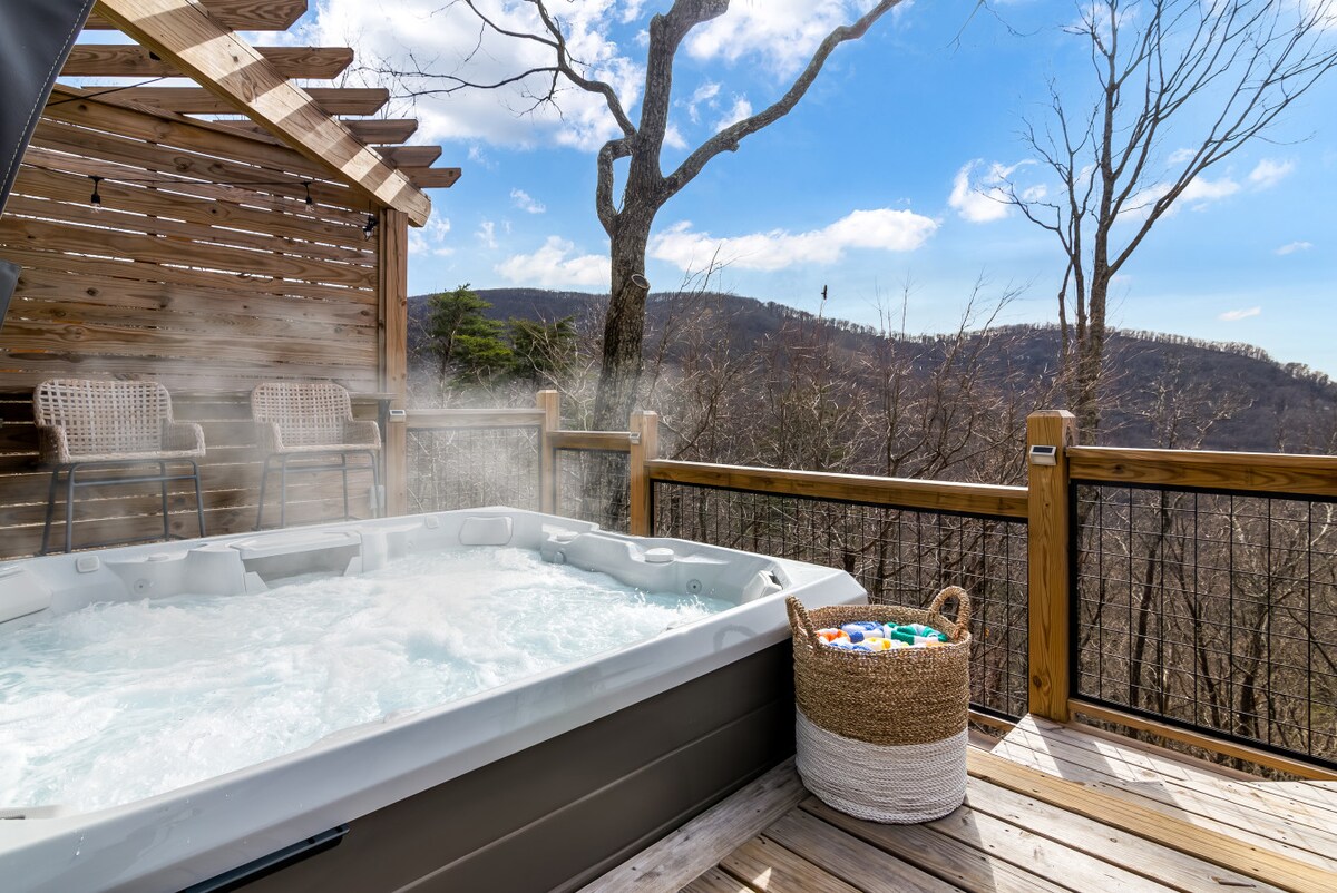 Finde Komfort und Entspannung in dieser gemütlichen 2-Zimmer-2-Bäder-Bergwohnung. Versteckt in den Appalachen bietet das Bearfoot Retreat jeden Komfort, den du dir wünschen könntest, damit sich dein Aufenthalt wie ein zweites Zuhause anfühlt. Mit einem Holzkamin, Seeblick und Blick auf den Felssturz, mit einer Außenbar mit Blick auf den Wald – dies ist der Rückzugsort, den du gesucht hast, mit allen modernen Annehmlichkeiten; eine Kaffeebar, 70 Zoll Smart-TV, Smart Home und mehr.