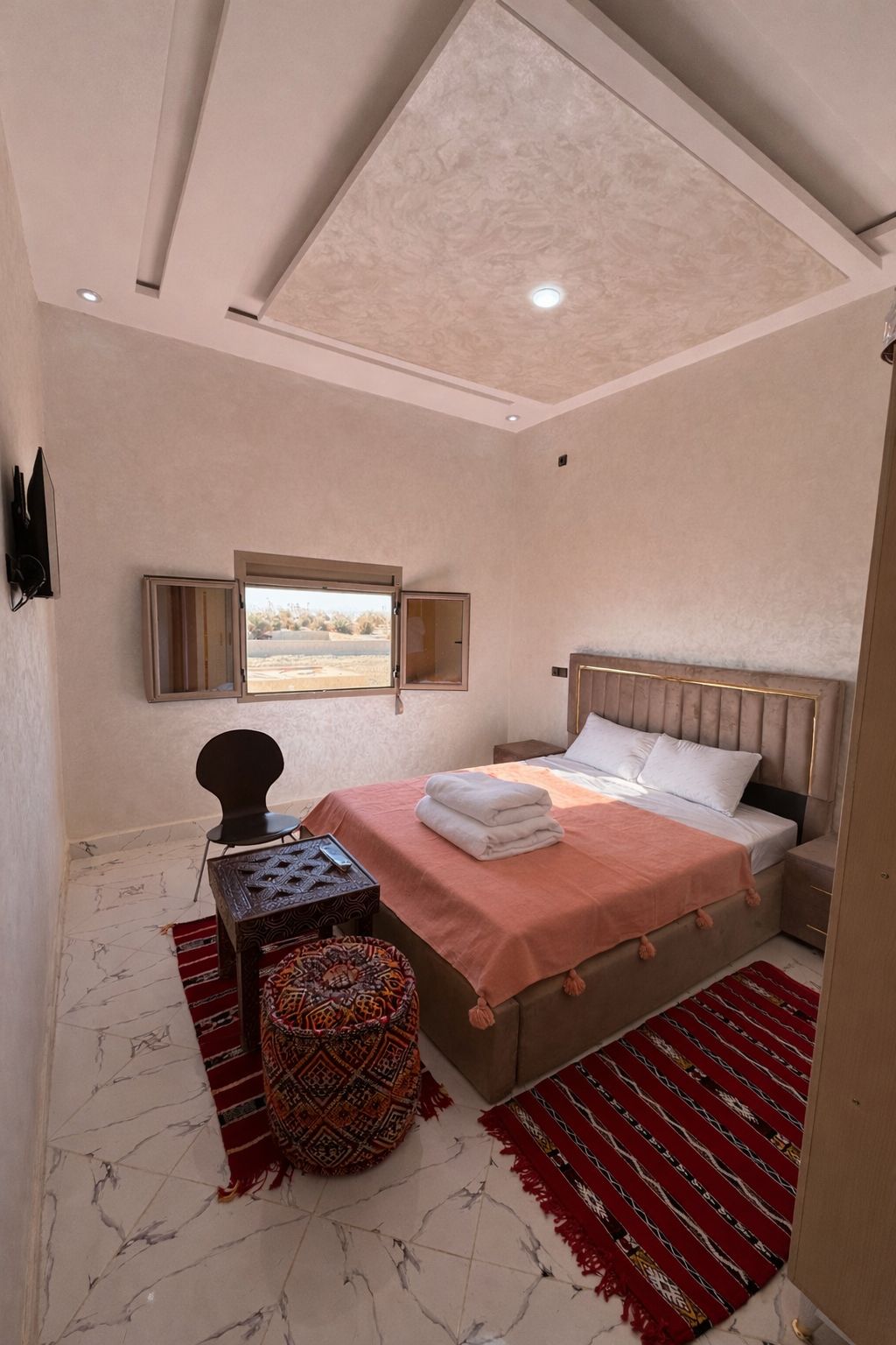 Nach dem Airbnb-Erfolg von The Dune House haben wir ein separates Studio-Stil-Zimmer hinzugefügt! Wunderschön rustikal, mit Aussicht von jedem Fenster aus und einem eigenen Balkon. Es gibt keinen Ort wie diesen. Für einen völlig einzigartigen Aufenthalt und authentische Wüsten-Gastfreundschaft sind wir stolz darauf, dich in unserem Lieblingszimmer in der marokkanischen Wüste willkommen zu heißen. Mit Zugang zur Hauptterrasse des Dune House und dem 200 m entfernten Pool unseres Hotels bietet dieses Zimmer einen separaten Eingang zum Haus.