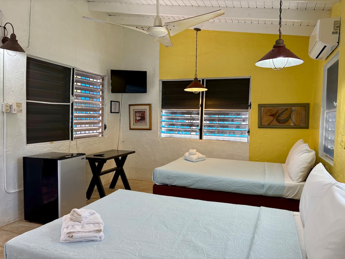 Wir sind eine tolle, karibische Strandimmobilie voller tropischer Farben, mit einer großartigen Lage und viel gutem Essen. Bei unseren Studios dreht sich alles um die Lage zu einem günstigen Preis, die ideale Unterkunft, wenn du auf der Suche nach einer Unterkunft bist, in der du einige leichte Mahlzeiten mit einer kleinen Küchenzeile zubereiten kannst, wenn du zum Strand, zu lokalen Restaurants laufen möchtest, Musik und Inselstimmung genießen möchtest, Ausgangspunkt für Touren zur biolumineszierenden Bucht, zum Sunbay Beach laufen möchtest, wenn du im Zentrum des Geschehens sein möchtest, das ist es!