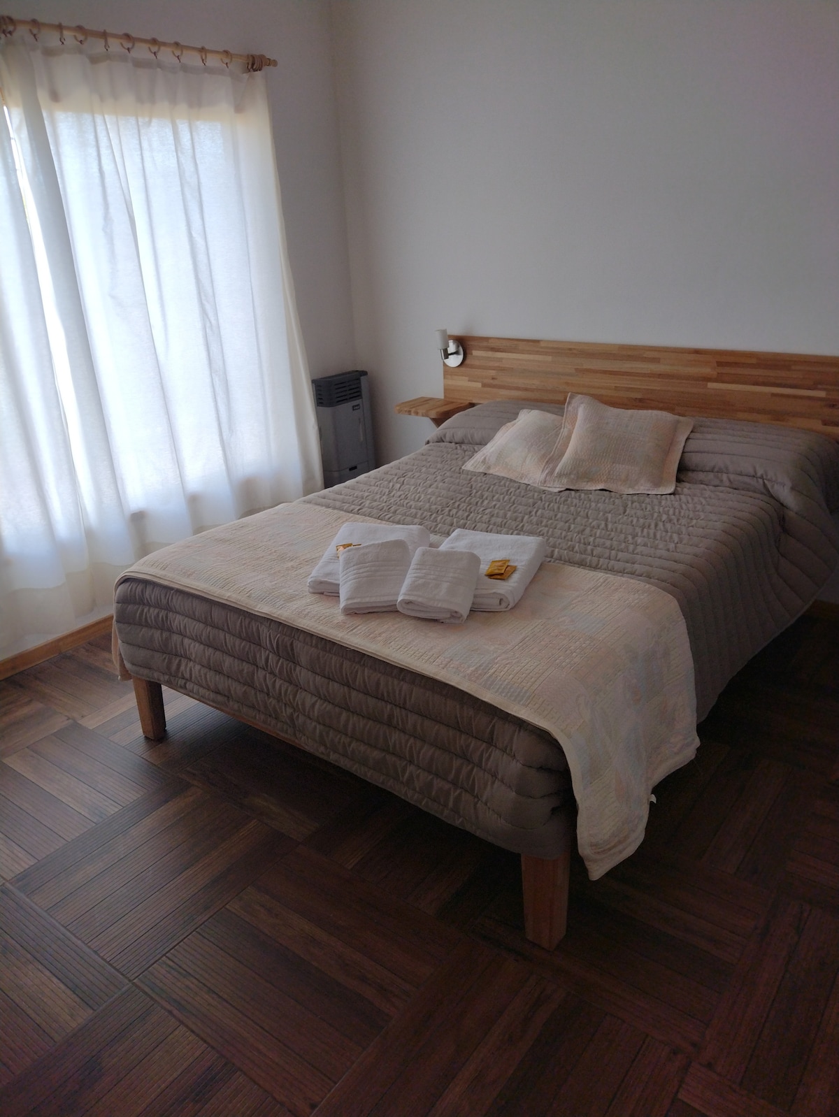 Genieße einen ruhigen und komfortablen Aufenthalt in dieser modernen, geräumigen Wohnung, nur ein paar Blocks von der Innenstadt von Esquel entfernt. Perfekt für Paare, Familien oder kleine Gruppen, die die natürliche Schönheit Patagoniens erkunden möchten. Die Wohnung verfügt über hohe Decken und helle, offene Räume, die eine entspannte, luftige Atmosphäre schaffen. Sie ist komplett ausgestattet für bis zu vier Gäste, mit Privatparkplatz, Highspeed-WLAN, DirectTV und Zugang zu Netflix, HBO und Disney+. Ein Außenwaschbereich steht ebenfalls zu deiner Verfügung.