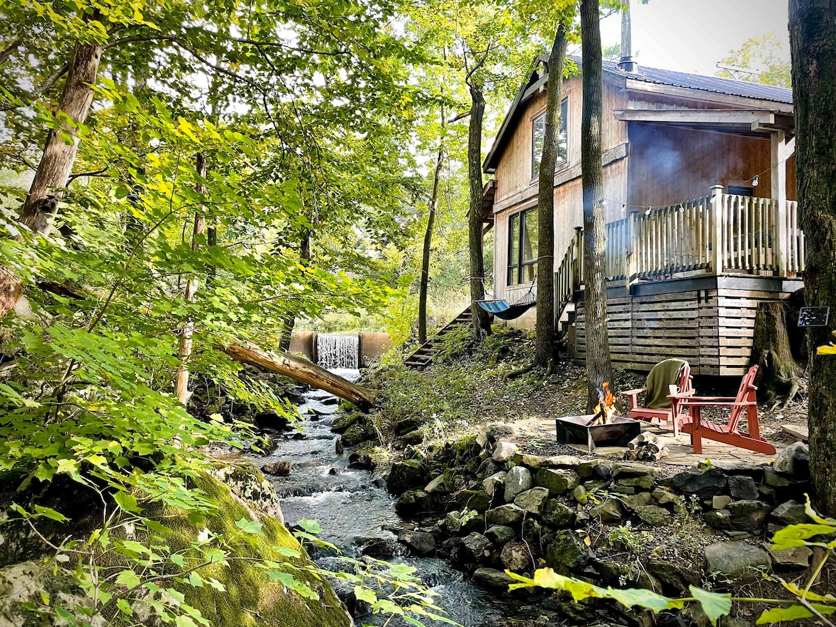 KOMFORT UND CHARAKTER, IN DER NÄHE VON SKI BROMONT! - Entspanne dich in einer rustikalen Hütte mit charmanter Einrichtung und originalen historischen Merkmalen. - Wärmen Sie sich im Whirlpool auf oder machen Sie es sich am Innenkamin gemütlich. - Genieße beruhigende Klänge von einem nahegelegenen Bach und malerische Aussichten von der Terrasse. - Erkunde die nahe gelegenen Sehenswürdigkeiten von Bromont und die malerischen kleinen Dörfer. - Buche jetzt und erlebe die Ruhe dieses friedlichen Rückzugsortes!