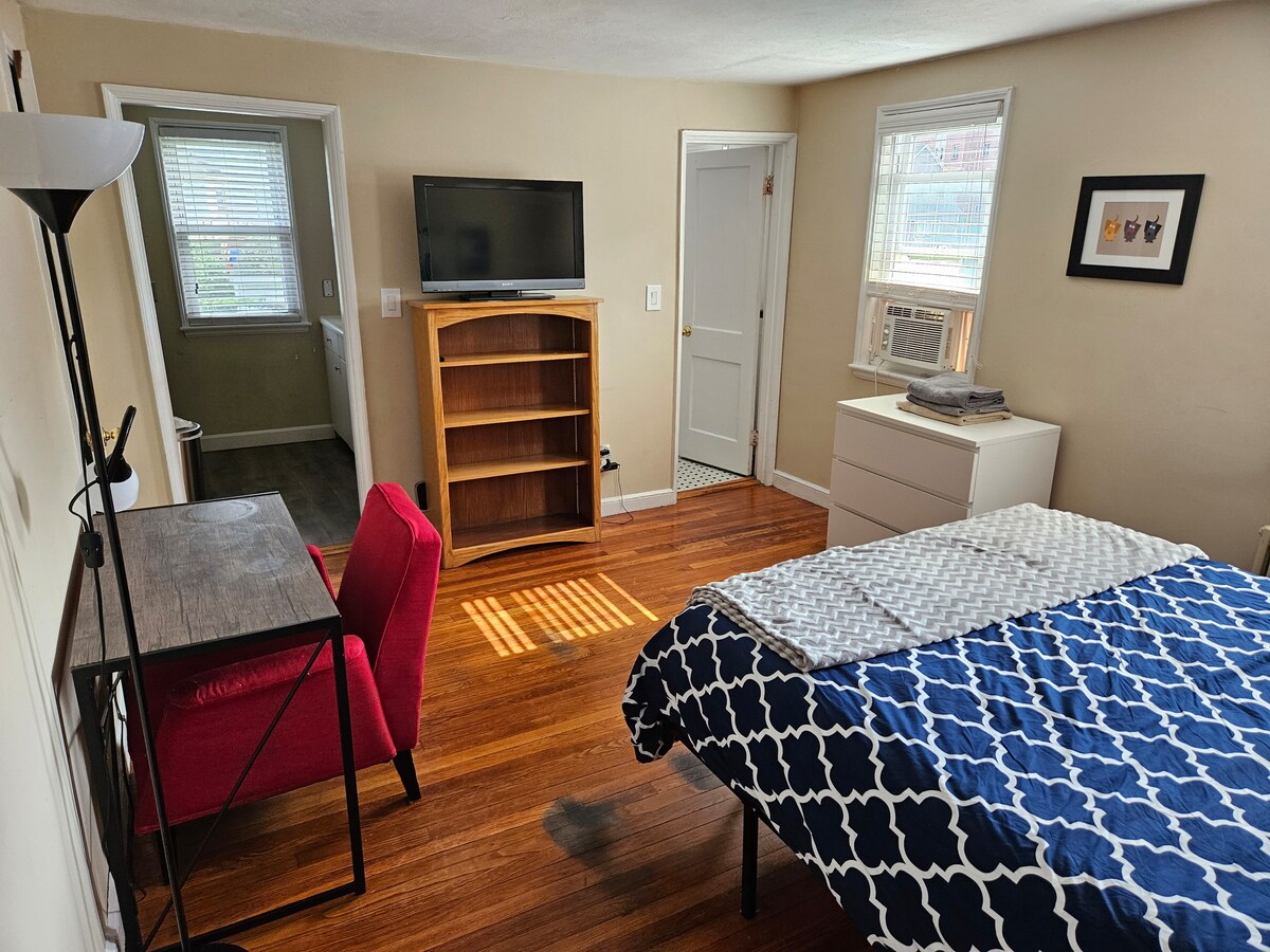 Private, rauch-/haustierfreie Effizienzwohnung im 1. Stock mit separatem Zugang für NUR EINE PERSON auf der Rückseite des Einfamilienhauses. Inklusive komplettem Badezimmer, Kühlschrank, Mikrowelle, Kaffeemaschine + WLAN. Alle Grundvorräte werden bereitgestellt. Parkplätze in der Einfahrt. Minuten vom MBTA-Transit einschließlich S-Bahn entfernt. Waschküchenzugang für Vermietungen ab 7 Nächten. Tut mir leid, kein Dampfen und keine Raucher – auch wenn du draußen rauchst – weil Rauchgeruch an dir oder deiner Kleidung im Zimmer zurückbleiben kann. Keine offene Flamme.