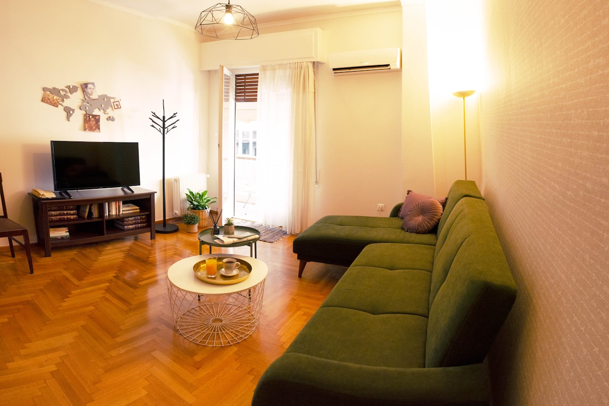Komfortable Wohnung 60 qm, komplett renoviert, mit allen grundlegenden Annehmlichkeiten ausgestattet, für einen angenehmen und freundlichen Aufenthalt, bis zu drei Personen. Sie befindet sich in einer zentralen Gegend in Exarchia, ganz in der Nähe des Zentrums von Athen. Schneller Zugang zur U-Bahn-Station (500 Meter vom Bahnhof Omonia und 1,2 km vom Bahnhof Panepistimio entfernt), direkt mit dem Flughafen und dem Hafen von Piräus verbunden. Apotheken, Supermärkte, Bäckereien sind alle innerhalb von 1-2 Gehminuten erreichbar.