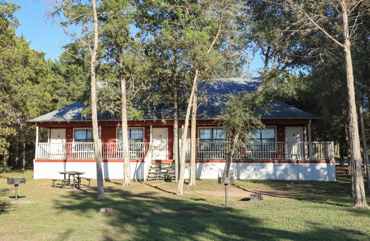 Erlebe Natur und Geschichte im Colorado Crossing. Genieße die private, ruhige, friedliche Hütte am Colorado River. Sechshundert Quadratfuß schöner Wohnraum mit einem Kingsize-Bett und einem Schlafsofa. Voll funktionsfähige offene Küche und Essbereich. Die Hütte ist ein großes Zimmer mit einem separaten, kompletten Badezimmer. Die hintere Veranda ist ein toller Ort, um die Sterne zu sehen. Die Hütte liegt im Wald mit Uferpromenade am Colorado River. Fische, wandere, fahre Kajak, genieße die Vögel und entspanne dich entlang des schönen Flusses.