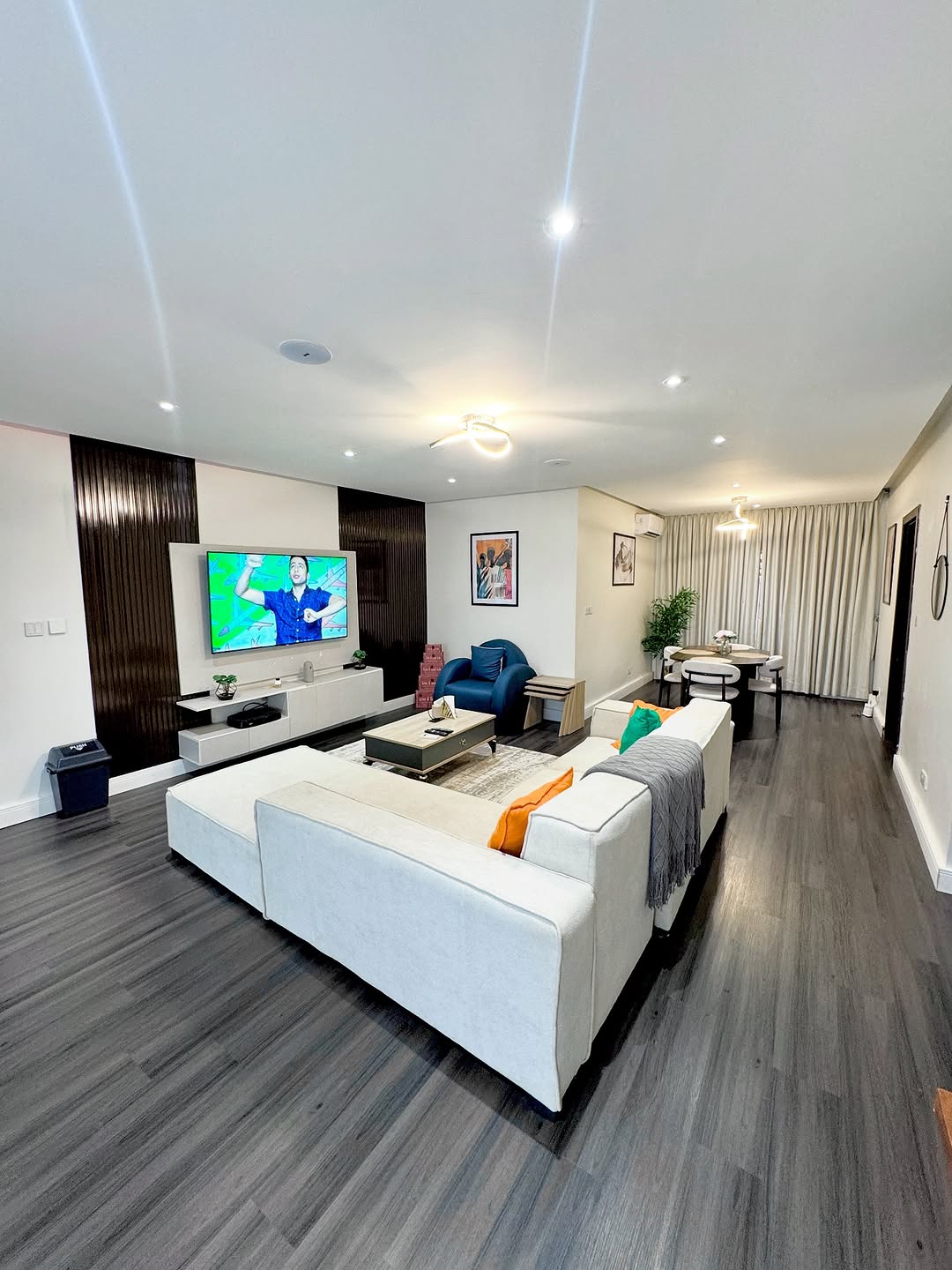 Genieße diese geräumige 3 Schlafzimmer, 3 und ein Halbbad-Duplex mit verstärkten Sicherheitstüren in einem Mini-Anwesen in Mabushi. 3 Minuten Fahrt nach Wuse 2, 7 Minuten nach Hilton in Maitama. Strom wird mit 100kva Industriegenerator betrieben, einem speziellen Wechselrichter, um zu garantieren, dass es immer Strom gibt, um das Gerät anzuzünden. Die Reinigungskräfte kommen jeden zweiten Tag, wir desinfizieren nach jedem Aufenthalt, wir verwenden nur weiße Bettwäsche, es gibt mehrere Smart-TVs in der Wohnung mit 5G-WLAN