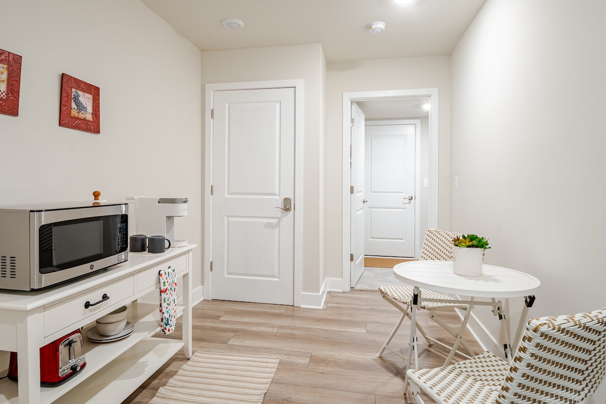 Red Maple Studio ist ein privates Studio mit 1 Schlafzimmer in einer ruhigen Straße im historischen Delmar, MD. Kylan Barn – 6 Min. Veranstaltungsort 54 – 7 Min. Innenstadt von Salisbury – 15 Minuten SU – 20 Min. OCMD – 45 Min. Schlafplätze (4). Queensize-Bett und ausziehbare Couch in voller Größe. Arbeitsbereich, schnelles WLAN, Küchenzeile, private Waschküche. Sichere Nachbarschaft, Parkplätze abseits der Straße, gut beleuchtete Gehwege. Einladende Hinterhof-Terrasse mit 6' hohem Sichtschutzzaun nur für dich. Stilvoll, super sauber und komfortabel. Leider keine Haustiere und Rauchen verboten.