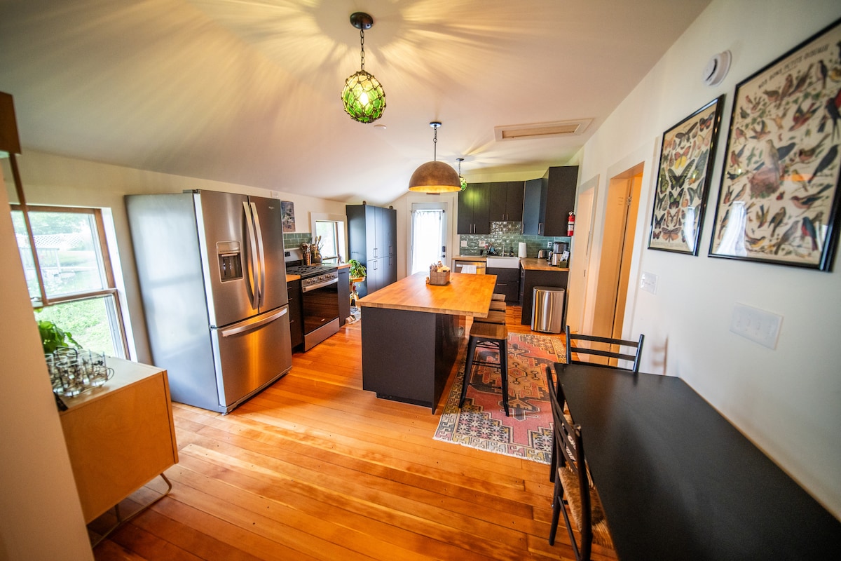 River's Retreat ist unsere helle und sonnige Wohnung mit 2 Betten/1 Bad im Herzen von Lanesboro, mit dem Fahrradweg, Kanu- und Schlauchbootverleih, Geschäften und Restaurants direkt vor deiner Tür. Dies ist das Obergeschoss eines Doppelhauses, eines der ursprünglichen Häuser in Lanesboro. Es ist neu renoviert, wobei der alte Charakter erhalten wurde, aber mit einer eklektischen Atmosphäre, origineller Kunst, weicher Bettwäsche und allen Annehmlichkeiten, damit du dich wie zu Hause fühlst. Wir haben auch einen Fahrradschuppen und eine Ladestation für dein Elektrofahrzeug oder Fahrrad.
