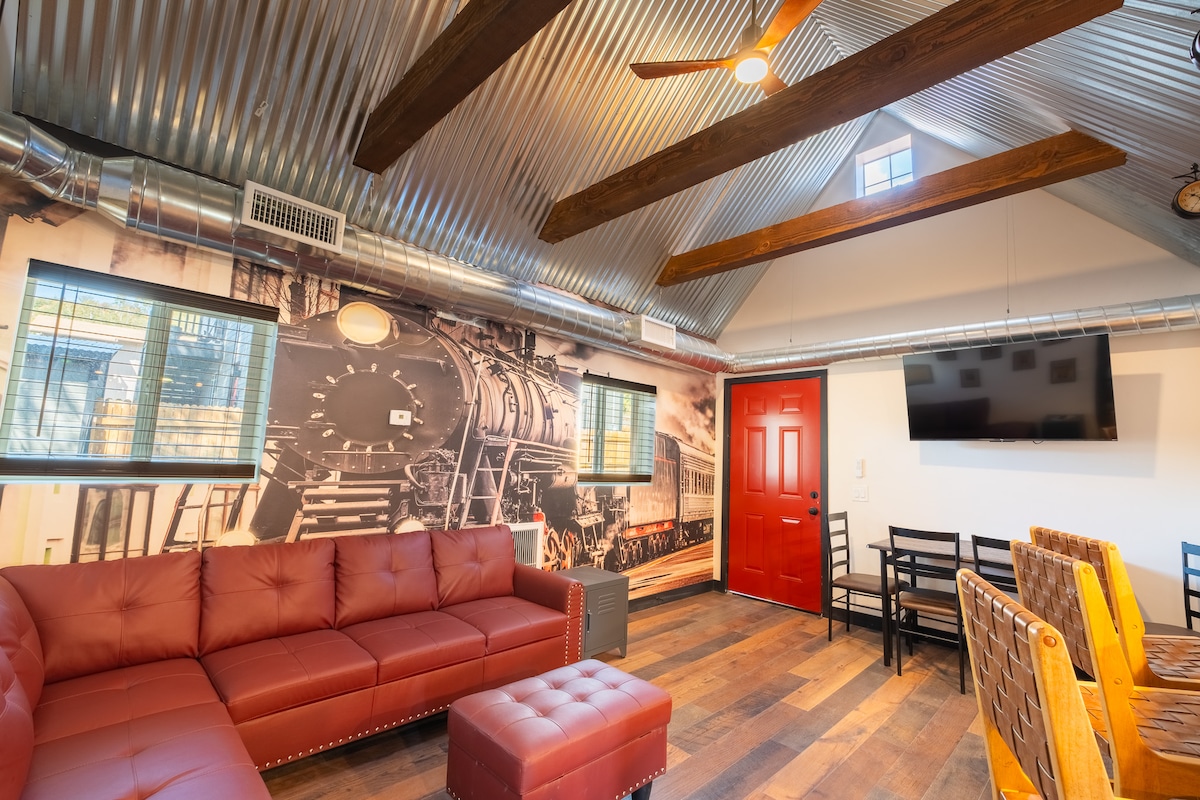 Alle einsteigen! Suchst du nach einer einzigartigen Unterkunft in der Innenstadt von Flagstaff? Nur eine 3-minütige Fahrt oder 10 Gehminuten von ALL DER ACTION entfernt! Nur wenige Minuten von deinen Lieblingsbars, -geschäften und -restaurants entfernt!! Musst du in der Nähe der NAU sein? Nur eine Meile entfernt! Eine 25-minütige Fahrt zum Snowbowl hält die Pisten auch nur eine kurze Autofahrt entfernt! Diese neu restaurierte Schönheit wurde 1900 erbaut und bietet die ganze Geschichte der ursprünglichen Route 66! Genieße mit deinen Gästen ein Feuer in der komplett eingezäunten Terrasse und lausche den vorbeifahrenden Zügen. VIEL SPASS!!