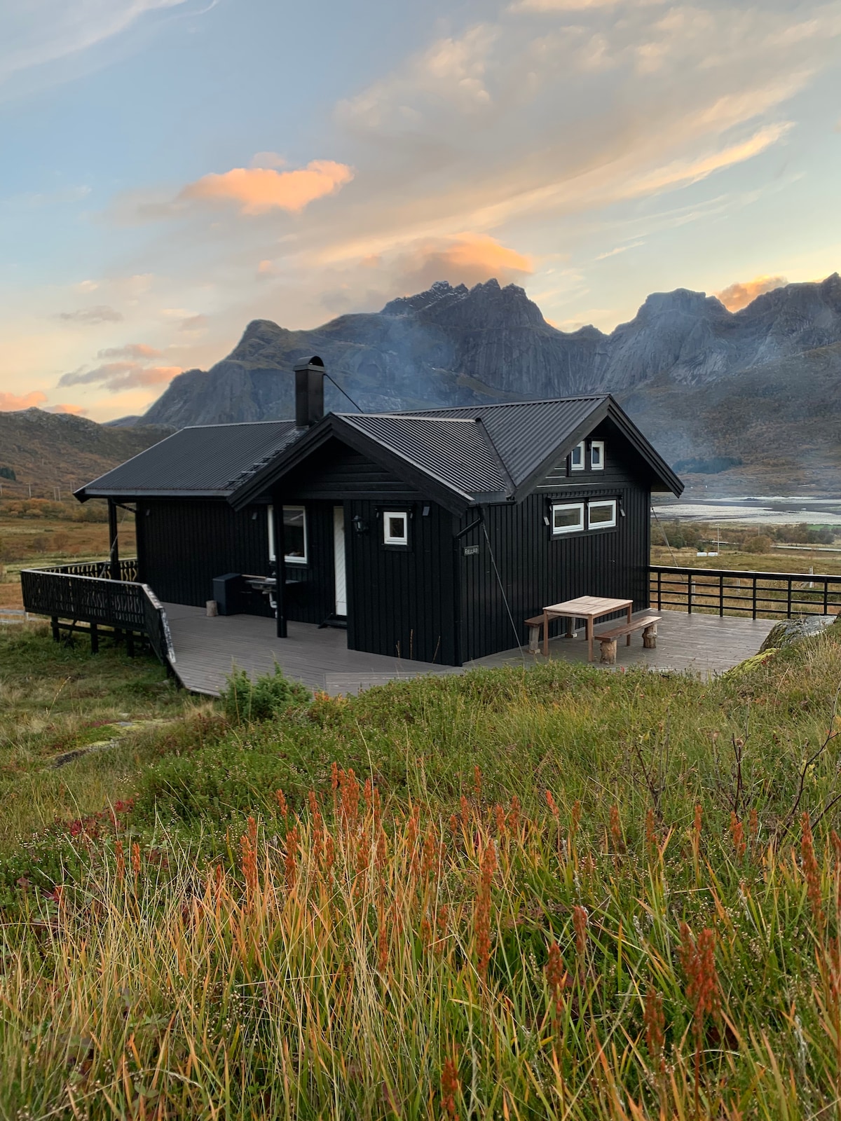 Skottindhytta auf den Lofoten, zwischen Meer und Bergen