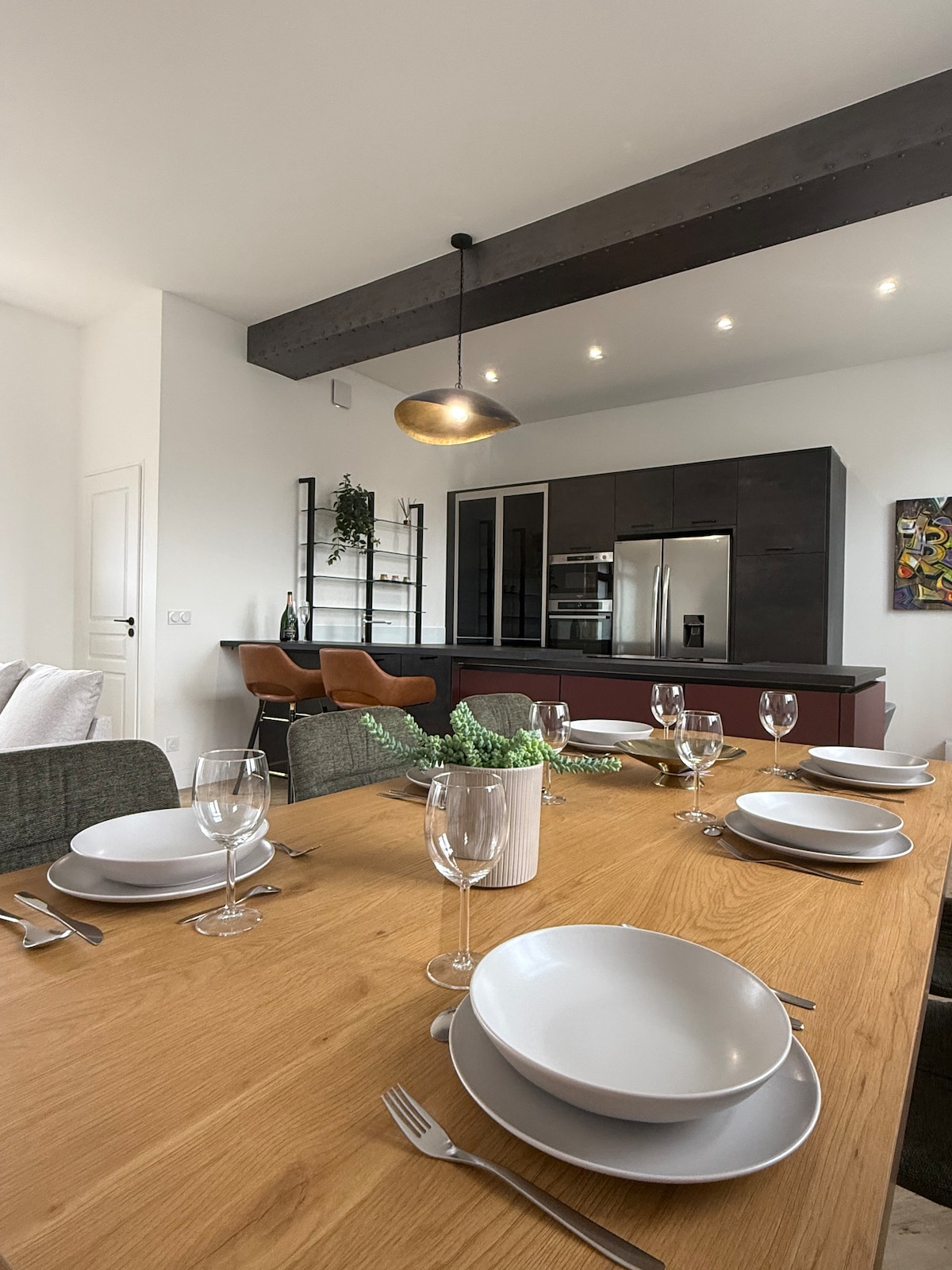 Schickes Industrie-Loft von 110 m² in einer alten Schmiede aus dem 19. Jahrhundert, renoviert. Das geräumige und gemütliche 55 m² große Wohnzimmer mit 3 Schlafzimmern und 2 Bädern ist ideal für Familien, Freunde oder kleine Gruppen. Stein, Metall und Holz schaffen ein helles und warmes Dekor, das Authentizität und modernen Komfort vereint. Das Hotel liegt in Pont-Sainte-Maxence, in einer ruhigen Gegend, 20 Minuten vom Parc Astérix und 40 Minuten (Zug) von Paris entfernt. Es ist der perfekte Ausgangspunkt, um die Oise und Paris zu erkunden.