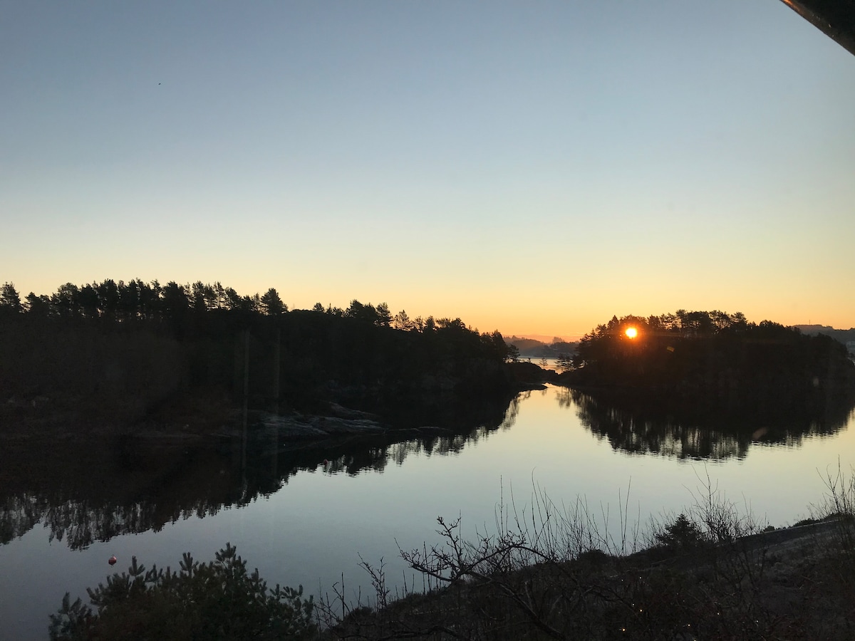Enjoy the spacious Icehouse and the calming view over Hanevik bay on Askøy - 35 mins outside Bergen by car (65 min by bus). Relax and gain energy to explore Bergen, the fjords and the beautiful west-coast of Norway or to attend your business in the area. The Icehouse is part of a "tun", a private yard surrounded by five houses.