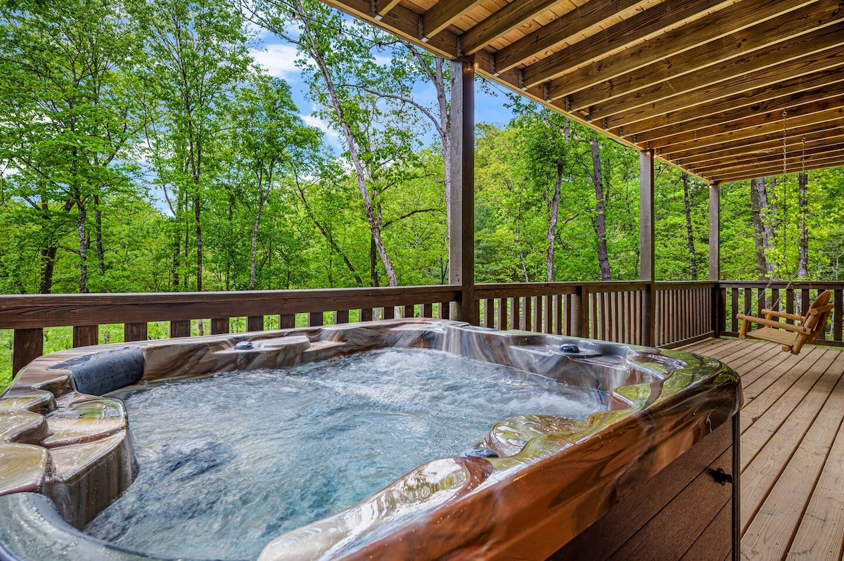 Rustikale Smoky Mountain Hütte mit privatem Whirlpool • In der Nähe des Cherokee Forest Versteckt im Wald von East Tennessee bietet diese handgefertigte Hütte authentischen Smoky Mountain-Charme. Durchgehend warmes einheimisches Holz, ein großes Bett mit kuscheliger Bettwäsche und eine voll ausgestattete Küche für einfache Mahlzeiten. Tritt nach draußen zu deinem privaten Whirlpool, der Feuerstelle mit Pavillon, den Schaukelstühlen auf der Veranda und der totalen Abgeschiedenheit – keine Nachbarn, keine Ablenkungen. Perfekt für Paare oder Alleinreisende, die sich nach echter Ruhe und Frieden sehnen. Einfach. Echt.