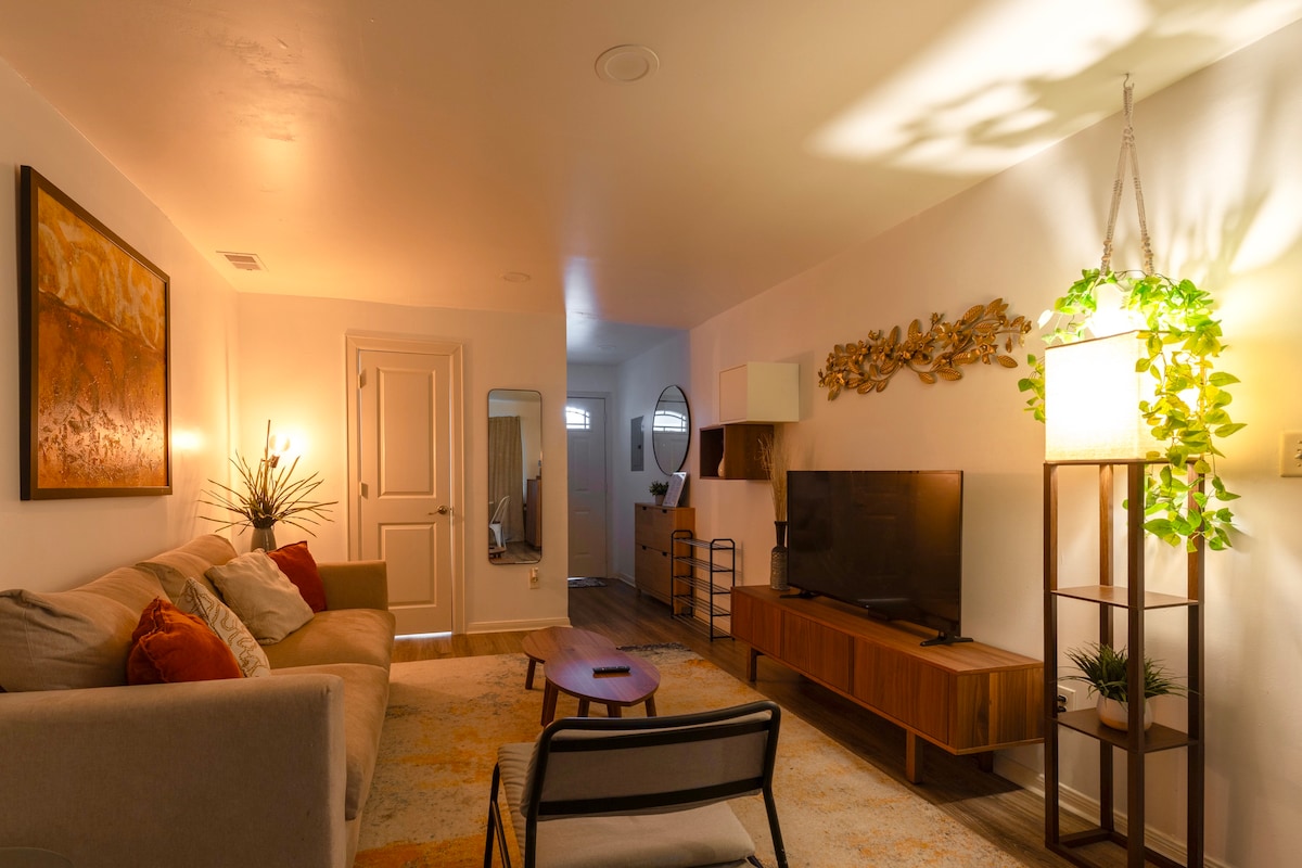 Diese charmante Wohnung mit einem Schlafzimmer bietet einen ruhigen Rückzugsort nur 30 Minuten von Houston, Texas, entfernt, perfekt für einen erholsamen Kurzurlaub. Mit weicher Beleuchtung, gemütlichen Möbeln und einer voll ausgestatteten Küche fühlt es sich wie ein zweites Zuhause an. Egal, ob du dich nach einem Tag voller Erkundungen erholst oder einen ruhigen Abend genießt, dieses „Urban Nest“ bietet Komfort und Ruhe in einer ruhigen Nachbarschaft.