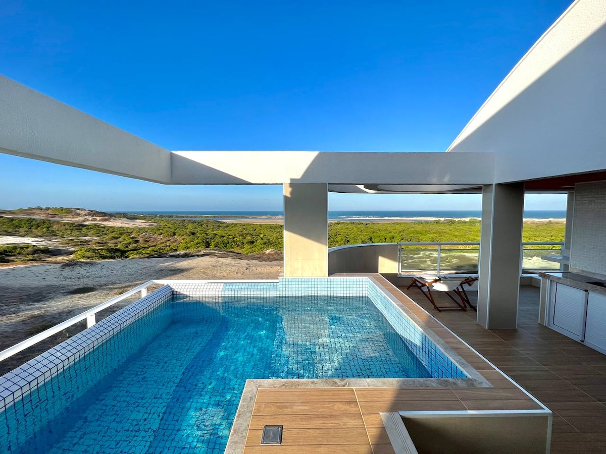 Loft-Penthouse mit Blick auf Future Beach, exklusivem Infinity-Pool, Whirlpool und Wasserfall, Gourmetraum mit speziellem Herd, Overhead-Projektor mit großer Leinwand, 50-Zoll-4K-TV, Außenbereich mit viel Grün und schöner Mondnacht sowie spektakulärem Sonnenaufgang mit der Sonne am Horizont vom unbegrenzten Rand bis zum blauen Meer. Das Hotel liegt 200 m von Guarderia Brazil, Fortaleza charmanten Beach Club.