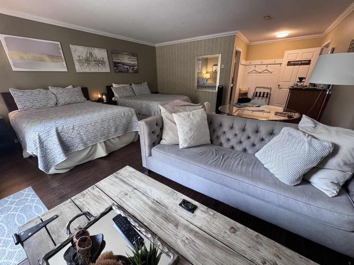 Our modern suite blends contemporary comfort with warm wood features for a comfortable stay. Large windows fill the space with natural light, creating a welcoming ambiance. The open layout and modern design ensure your comfort. Explore local shops and enjoy the small-town charm of the area. Close to amenities like Award-Winning Golf at Ledgeview, Hiking Trails, and other outdoor activities. Close to Abbotsford Entertainment Centre, Abbotsford International Airport, and the Tradex.