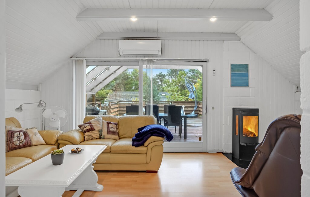 In der Nähe von Ebeltoft finden Sie dieses Ferienhaus, das in einen wilden Garten mit Hängematte und Gartenbank eingebettet ist. Das Haus bietet viele einzigartige Details wie einen Kachelofen. Nachhaltigkeit ist ein durchgängiges Thema. Das Dachgeschoss ist der perfekte Rückzugsort, wenn Sie sich mit einem guten Buch entspannen möchten oder wenn die Kleinen spielen möchten. Der Garten darf sich im Grunde selbst versorgen. Das Ferienhaus bietet auch eine schöne Außendusche und nach dem Abspülen können Sie die Außensauna genießen