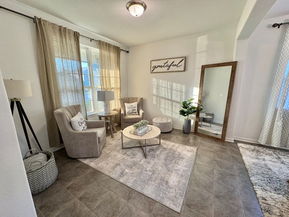 Entfliehe diesem brandneuen, stilvollen Rückzugsort mit 3 Schlafzimmern im Herzen von Fulshear, wo Komfort auf Charme trifft. Mit 2 funkelnden Bädern, einem gemütlichen offenen Wohnbereich und einer voll ausgestatteten Küche ist diese Unterkunft bereit, deinen nächsten Kurzurlaub zu veranstalten. Tritt nach draußen auf eine private Terrasse - perfekt, um morgens Kaffee zu trinken oder dich unter dem Sternenhimmel zu entspannen. Egal, ob du zu einem Familienausflug, einem Wochenende mit Freunden oder zu einem ruhigen Arbeitsurlaub kommst, diese Unterkunft bietet die perfekte Mischung aus Entspannung und Bequemlichkeit.