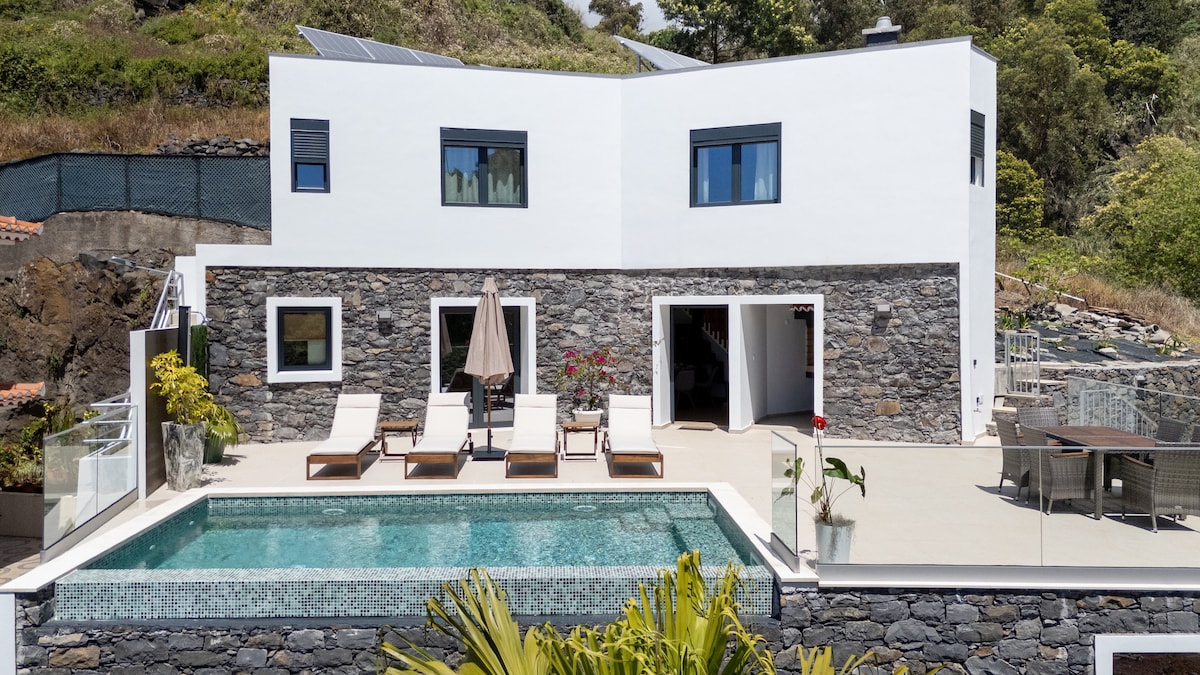 Freistehendes Haus in einem Agritourismus-Grundstück namens „Casas da Levada“, mit Frühstück im „do it yourself“ -Modus. Von einem alten Weinkeller, in dem die Bauernhofwerkzeuge aufbewahrt wurden, wurde die „Casa da Cascata“ wieder aufgebaut, wobei ihre ursprüngliche Steinaufteilung beibehalten wurde und die rustikale und moderne Linie in Einklang brachte. Mit Blick auf den Pool bietet es einen exklusiven Blick auf den Atlantik und einen einzigartigen Sonnenuntergang von der westlichsten Spitze der Insel Madeira.