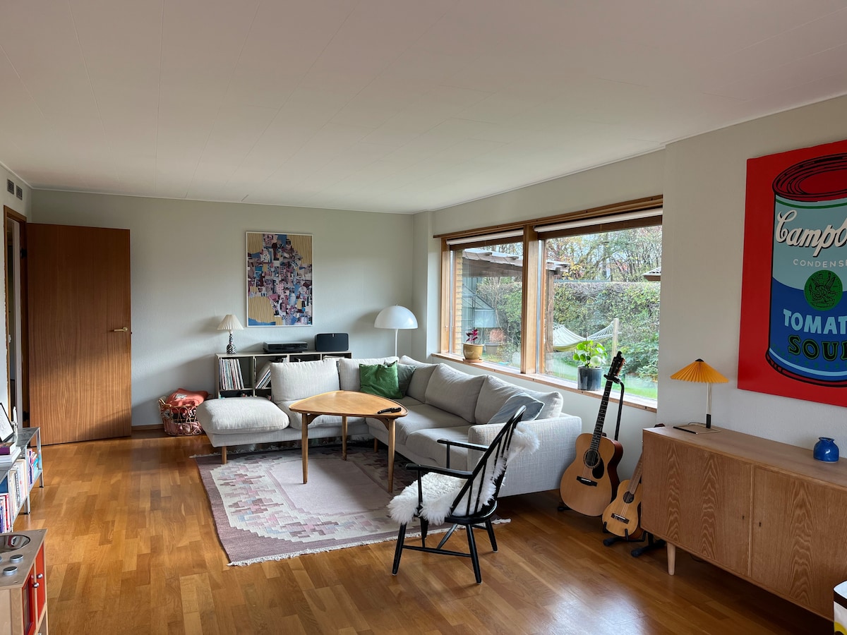 New full-size family house located 15 km north-west of Copenhagen (available by 20 min. train ride). Located in calm residential area, next to Hareskoven, a large forest with hiking, riding and mountain-biking tracks. The house is ideal for families but also couples needing a quiet retreat close to an exciting metropol - Copenhagen! Three bedrooms plus sleeping sofa in living room, two bathrooms (one with shower, one with full size bath). All appliances + Wifi, Apple TV, Sonos sound system.