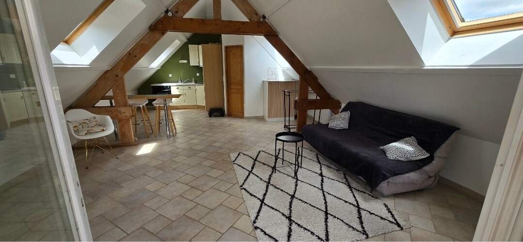 Ruhiges Studio für 2 Personen Schlafsofa Schreibtisch und Bürostuhl Küche, Kaffeemaschine, Wasserkocher, Backofen, Kochfeld Duschbad WC Die Reinigung ist NICHT inbegriffen Kleiner Balkon mit 2 Stühlen und einem Tisch, um die Natur zu genießen Gemeinsamer geschlossener Parkplatz Das Hotel liegt im Vallée de l 'Eure. 5 km von der Stadt Pacy-Sur-Eure entfernt, wo Sie alle Geschäfte finden. 13 km zum großen Einkaufszentrum McArthurGlen Paris-Giverny 18 km von der Stadt Vernon entfernt 19 km von der Stadt Evreux entfernt