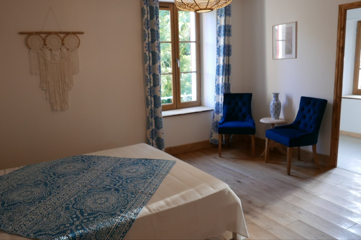 Entspannen Sie sich in diesem komfortablen Zimmer mit eigenem Bad nur für Sie sowie einem kleinen Kühlschrank. Sehr geräumiges, ruhiges Zimmer mit Zugang zu einer großen Terrasse mit gemütlichem Wohnzimmer und beheiztem Pool, die während Ihres Aufenthalts bei uns VOLLSTÄNDIG PRIVAT sind. Atemberaubende Aussicht auf die Berge des Obiou-Massivs, umgeben von viel Grün, eine wahre Naturblase