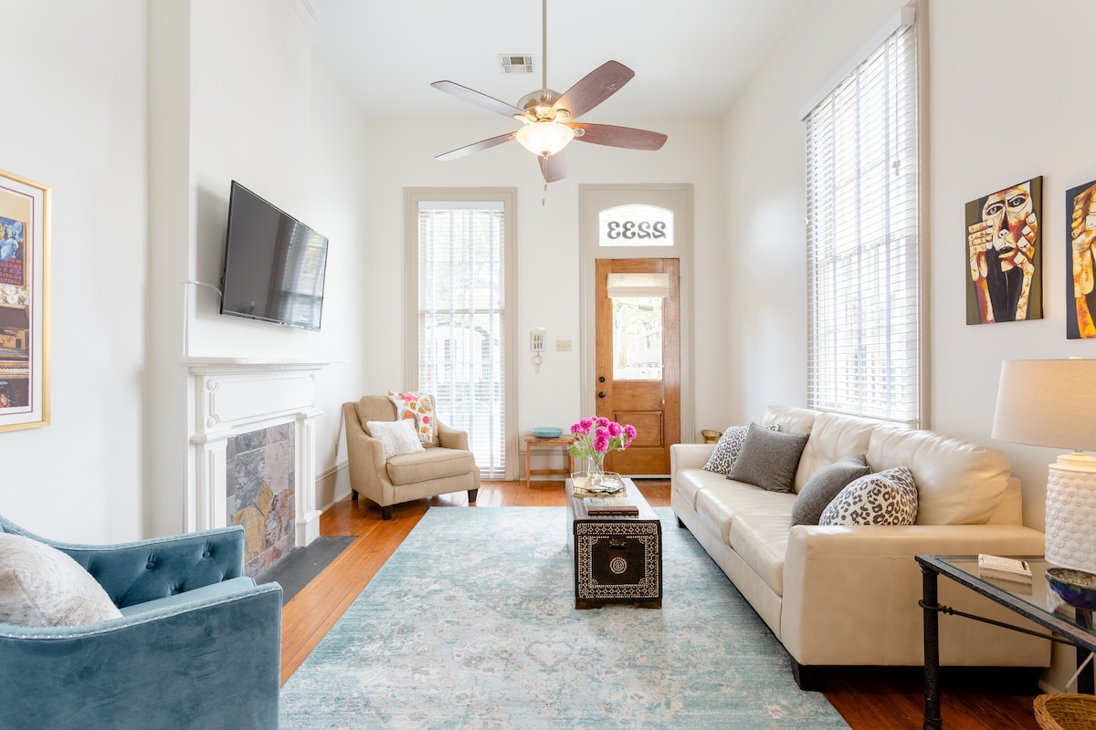 Große Fenster lassen viel Licht herein, während Hartholzböden, 14 Fuß hohe Decken, originale dekorative Kamine und jede Menge lokale Kunst für echtes NOLA-Flair sorgen. Schlafen Sie gut auf unserer Plüschmatratze und genießen Sie weiche Bettwäsche und Handtücher. Entspanne dich auf der Veranda, während du unseren umfangreichen Reiseführer erkundest, und erlebe NOLA dann wie ein Einheimischer, während du ein pulsierendes Viertel voller atemberaubender historischer Häuser und all der unglaublichen Restaurants, Geschäfte und Bars entlang der berühmten Magazine St. entdeckst.