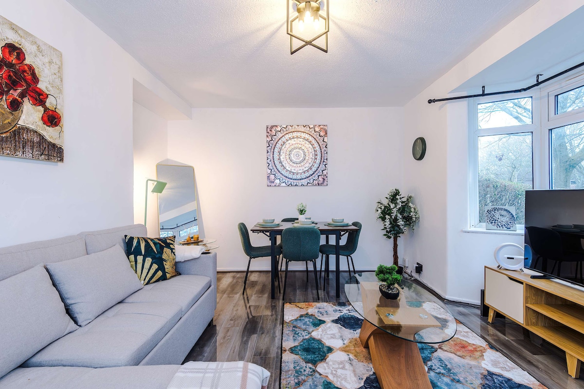 Dieses Haus ist ideal für diejenigen, die eine stilvolle und geräumige Unterkunft mit 2 Doppelzimmern suchen. In der Nähe des Flughafens Manchester, 1,5 Meilen entfernt und nur 20 Minuten vom Stadtzentrum von Manchester/Salford entfernt. Die Unterkunft bietet Platz für bis zu 4 Gäste und wurde auf hohem Niveau renoviert, um einen modernen und dennoch gemütlichen Raum zum Genießen und Entspannen zu bieten. Die Unterkunft ist mit einem modernen Sicherheitssystem ausgestattet und befindet sich am Ende einer Sackgasse in einer ruhigen Wohnstraße mit 2 Parkplätzen für deine Fahrzeuge.