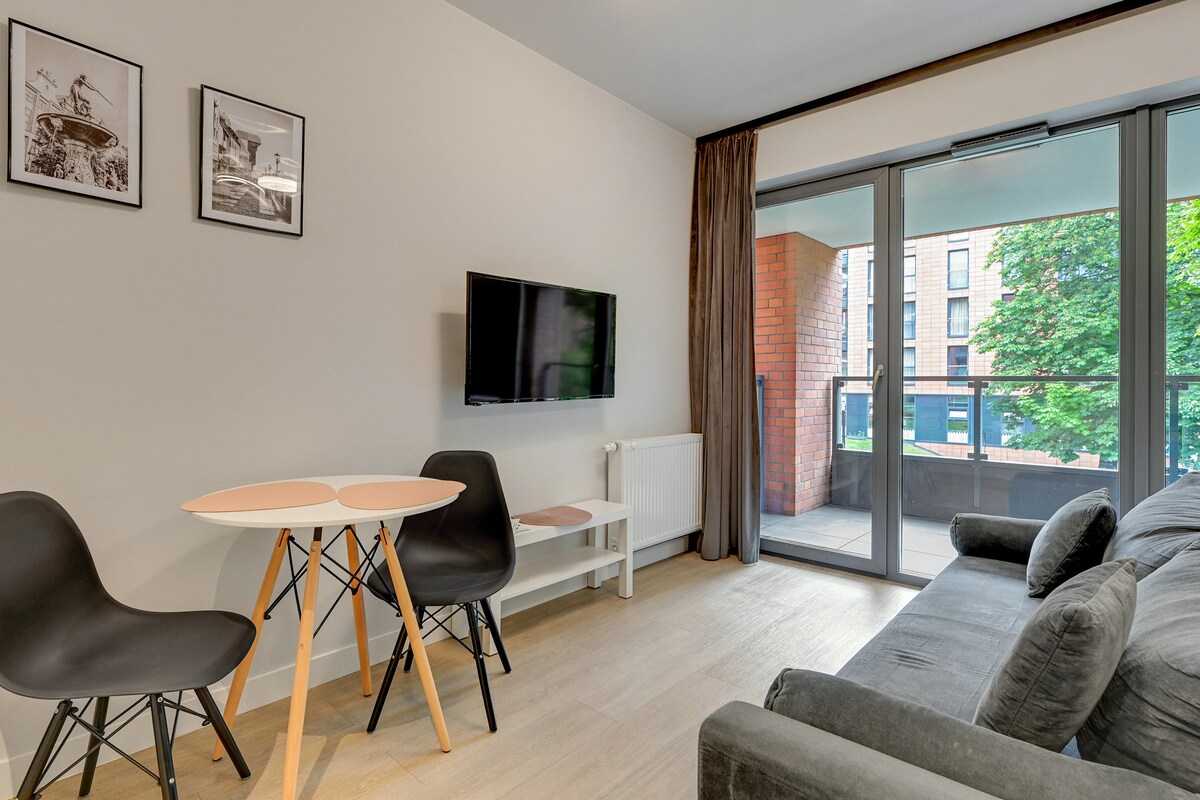 A spacious, comfortably furnished and equipped apartment that can accomodate up to 4 persons, with balcony and free parking space in the secure underground garage. It is located on the Granary Island, in a modern apartment building with restaurants, bars and shops on your doorsteps. A short walk away and you are on Long Bridge, the Crane, Neptune's Fountain, St Mary's Church e.t.c.!!! The apartment consists of living room with kitchen annex, bedroom, 2 beds, bathroom and a balcony.