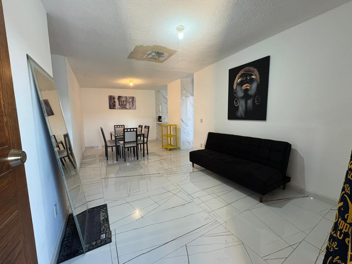 Genieße die Wärme dieser ruhigen und zentralen Unterkunft in der Gegend von Bispado, unterhalb der Flagge, in der Gegend von Krankenhäusern von Monterrey wie Muguerza, Conchita usw., auch in der Nähe der Plaza Real HEB und Galerías Monterrey. Sie verfügt über eine Küche mit einer elektrischen Waschmaschine, eine elektrische Waschmaschine, einen 55-Zoll-Fernseher, einen Alarm, einen Alarm, einen Zwei-Tonnen-Minis-Split, ein geräumiges Badezimmer. Queensize-Bett und ein Schlafsofa sowie ein Schlafsofa. Es verfügt über eine Toilette und einen Wasserreiniger.