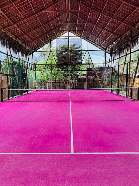 Tritt ein in dein eigenes privates Refugium – im Herzen des Padel & Palms Padel-Clubs. Willkommen im The Padel Hideaway. Ein gemütliches, stilvolles Privatzimmer, das sich weniger wie eine Unterkunft und mehr wie dein Traumurlaubsdomizil anfühlt. Im Herzen von General Luna, Siargao. Dies ist ein geräumiges Privatzimmer mit eigenem Badezimmer und einem privaten Entspannungsbereich im Freien. Beinhaltet Annehmlichkeiten wie Arbeitsbereich, Bambus-Außendusche, Kühlschrank, Starlink-WLAN, Klimaanlage, ermäßigte Padel und das bald zu eröffnende Bamboo Café und Eisbad.