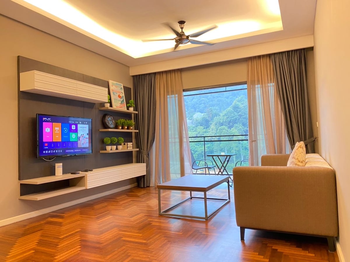 Moderne Antara Genting Highlands Wohnung mit hellem Wohnzimmer, Smart-TV, Astro-Streaming, Highspeed-WLAN und einem automatischen Mahjong-Tisch für Familienspaß. Offenes Esszimmer, gemütliche Schlafzimmer mit Fernsehern und stilvolle Einrichtung. Zu Fuß zum Genting Casino, SkyWorlds Theme Park, Arena of Stars, SkyAvenue Mall und Genting Cable Car innerhalb von 15 Minuten über die Link Bridge. -perfekt für Familien- oder Gruppenausflüge.