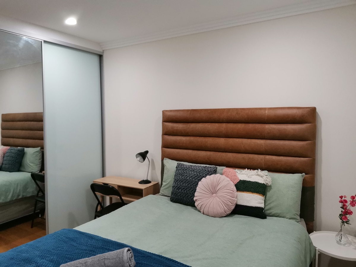 Diese kürzlich renovierte Gästesuite befindet sich im Erdgeschoss unseres Hauses mit eigenem privaten Eingang. Es ist eine ruhige Vorstadt, aber mit einfachem Zugang zur Innenstadt von Sydney und zu den Flughäfen. *5 Gehminuten zum Bahnhof, direkte Zugverbindung zu den Flughäfen. *3 Gehminuten von Bushaltestellen, Restaurants, Cafés und Supermarkt entfernt. Es ist der ideale Rückzugsort für ein Paar oder Alleinreisende. Du kannst im Zimmer arbeiten, im Sonnenraum entspannen oder die Sonne auf der Holzterrasse genießen.