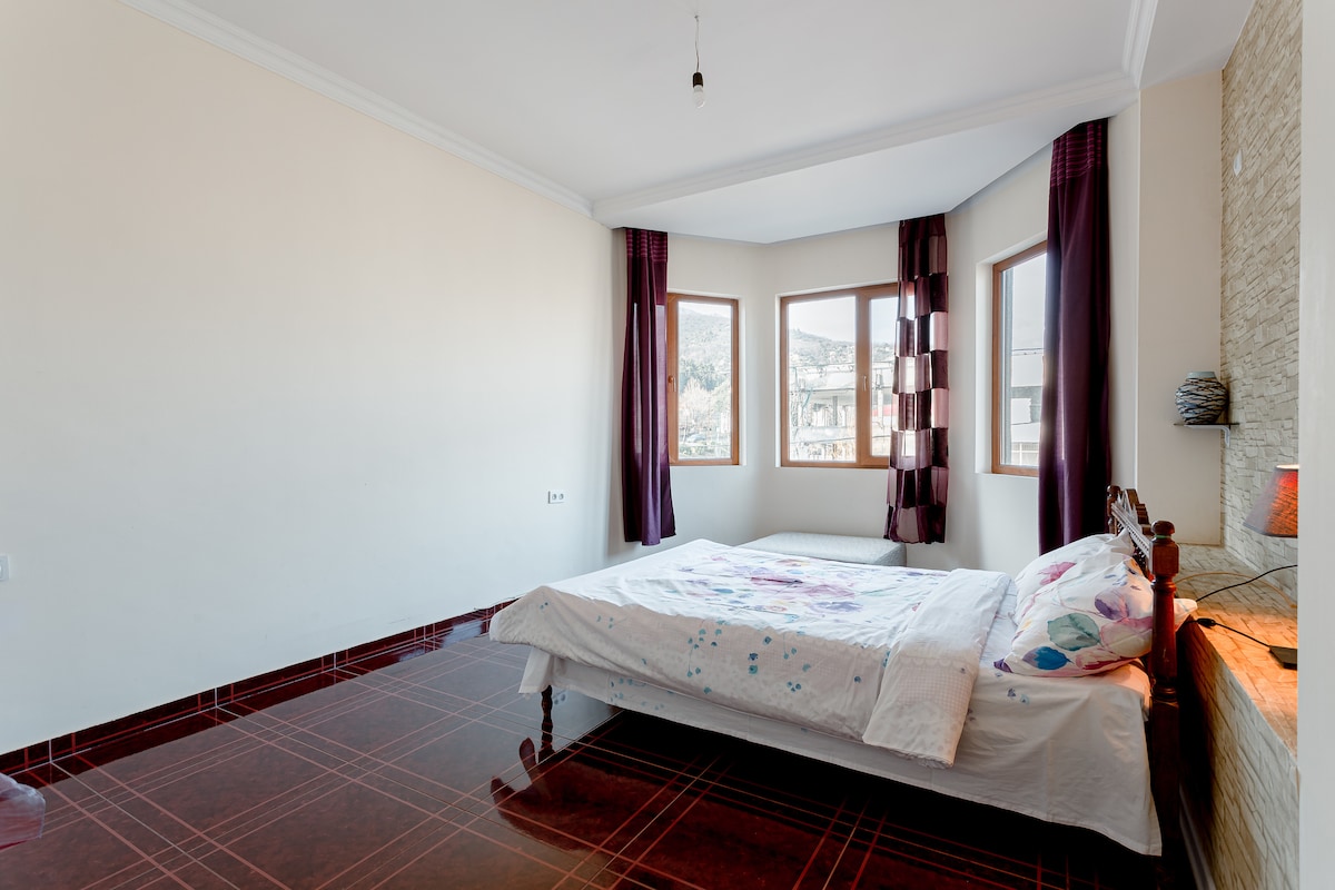 Großes, schönes 2-stöckiges Haus in Gonio. Genießen Sie die Stille der Natur und die Meeresluft. Kostenloses WLAN, TV. Verfügt die Wohnung über eine Küchenzeile, sowie eine Sommerküche im Hof mit allen Küchenutensilien. Dein Weg zum Strand dauert nicht mehr als 2 Minuten zu Fuß. Zur Miete 2-Zimmer-Wohnung in der 2. Etage eines Hauses mit Veranda mit Blick auf den Garten, wo man georgischen Wein trinken kann. Auf der anderen Seite der Wohnung mit Balkon mit Blick auf die Berge