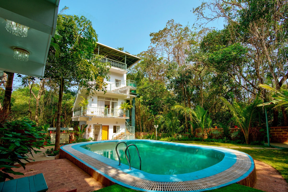 Make some memories at this unique and family-friendly place just 15 min drive from Anjuna beach and 5 min from Panjim. With 4 lavish rooms , crafted Hall with direct access to private pool , the place offers the best experience !! The Tropical vibes of Villa completes the overall experience of Goa. We also offer the fully equipped kitchen with a helper for all your midnight cravings. The entire place is managed by Orupools. Villa also have 24*7 power backup for hassle free stay.