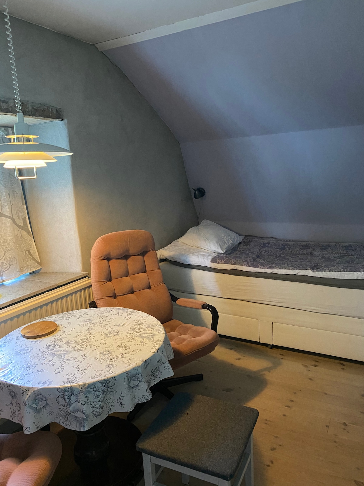 Nyrenoverad liten flygel i vacker gårdsmiljö med utsikt mot havet i härliga Hamra, Gotland * Nära Hamra Krog och Hamra sommarbageri * 800 m till närmsta strand * 7 km till Serviceort Burgsvik * Nedre plan: bäddsoffa för 2, matplats för 4, badrum m. dusch och vattentoalett, garderob, pentry m induktionshäll 2 plattor (ingen ugn), kyl/frysfack * Övre plan: 2 sängar (ställs ihop eller isär), stor takkupa med utsikt mot trädgård, kohage och hav * Stenlagd uteplats, ute-möbel för 4, grill