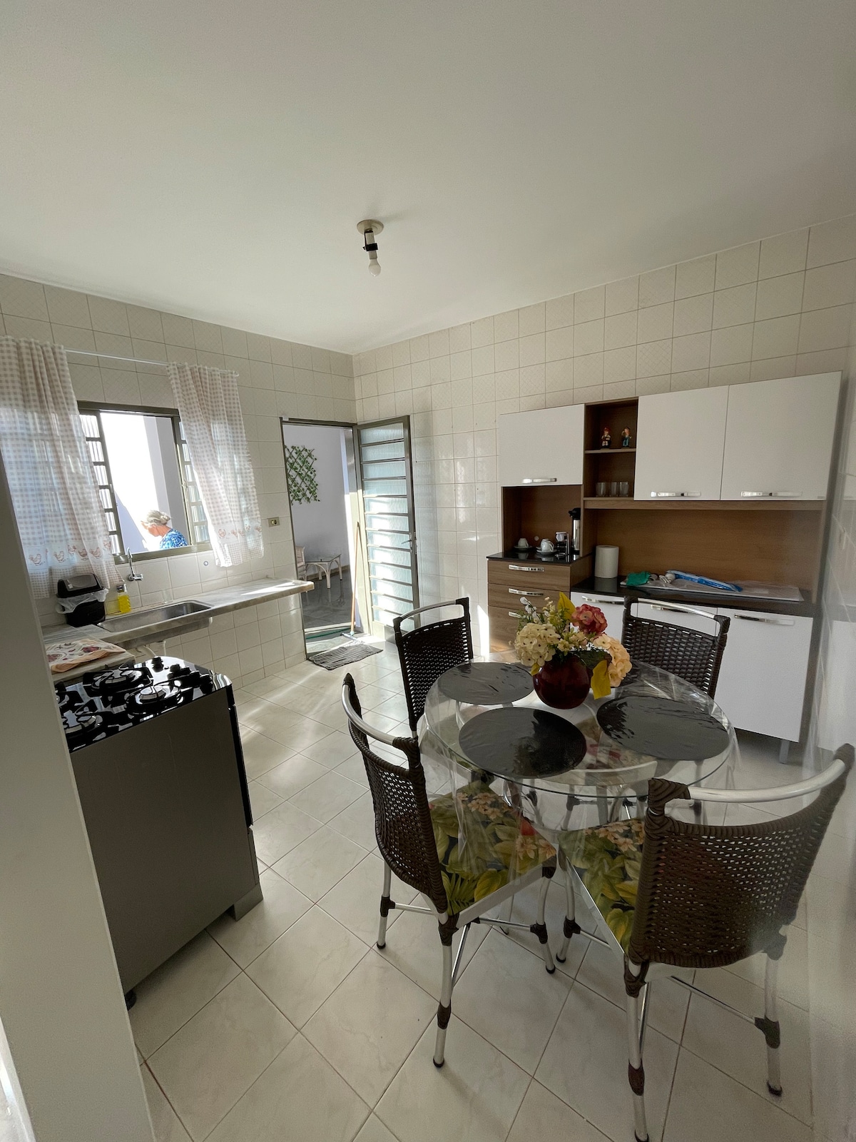 Ausgezeichnete Einzimmerwohnung für 1 oder 2 Personen oder (2 Erwachsene und 1 Kind) Check-in ab 15:00 Uhr und Check-out um 12:00 Uhr. Kitnet Individual mit 01 Küche (klein), 01 Schlafzimmer und 01 Badezimmer. Tolle Unterkunft mit Klimaanlage, Smart-TV, Kleiderschrank, Bügeleisen, Laptop-Tisch. Küche mit Minibar, Kaffeemaschine, Sandwichmaker, Mikrowelle, Spülbecken und Elektrogeräten. Garage und der einzige gemeinsam genutzte Raum.