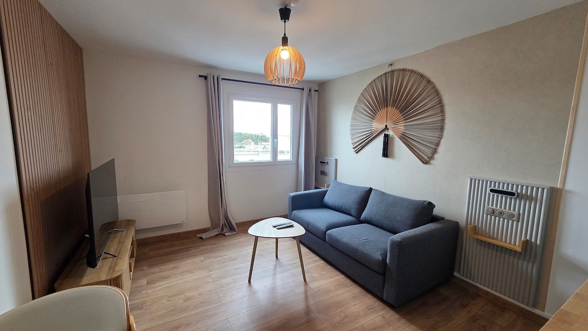 Komplett renovierte Wohnung im Herzen des Stadtzentrums ohne Gegenüber mit 2 kleinen Balkonen. Auf der Straße finden Sie: Bäckerei, Catering, Gemüsehändler, Restaurant und viele Geschäfte. Wohnung und Parkplatz sind dank des Tors sicher! Bushaltestelle 150 m zu allen Zielen (Bahnhof, Strand etc...) und KOSTENLOSER Bus! WLAN, Chrome Cast, Waschmaschine, Bügeleisen, Nespresso, Wasserkocher, Toaster, Filterkaffeemaschine, Herd, Mikrowelle.