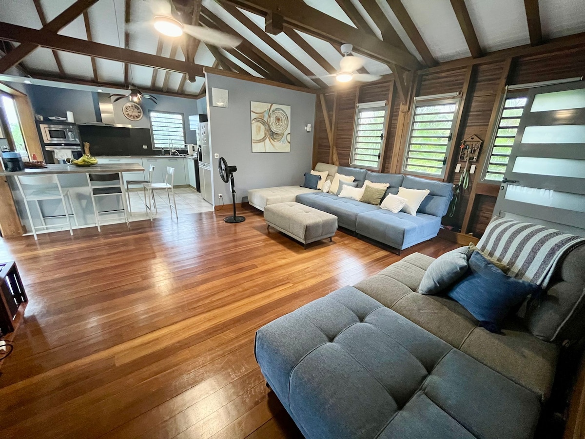 Nouveauté : maison eco + : eau filtrée /zéro bouteille, EAU H24 , citerne. , douche extérieure . JACUZZI privé . Laissez-vous bercer par les sons de la nature dans ce logement unique,tout en bois, situé entre un spot de surf et des cascades en pleine montagne. A seulement 15 minutes du port pour embarquer en direction des Saintes pour la journée ou plus et à 30 minutes du départ pour l ascension de notre belle Soufrière. Et tellement d’autres trésors à découvrir: spot de surf