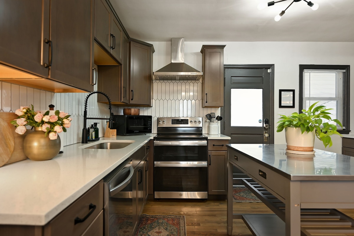 Eklektisches Dekor trifft auf charmante Vintage-Architektur in diesem 100 Jahre alten Haus im Herzen von South Kansas City. Hier findest du Platz für alle, drinnen und draußen! Dies ist dein der Nähe, wenn du zum Sport, zu Konzerten oder zu Freunden und Familie kommst. Hier hast du alles, was du benötigst – von Spielzeug und Spielen für die Kleinen, Smart-TVs, Schreibtisch und kostenlosem lokalem Kaffee bis hin zu einer von einem Koch inspirierten Küche und einem Außengrill für die einfache Zubereitung von Mahlzeiten. Hier findest du hochwertige, komfortable Betten, die es dir ermöglichen, dich zu entspannen.