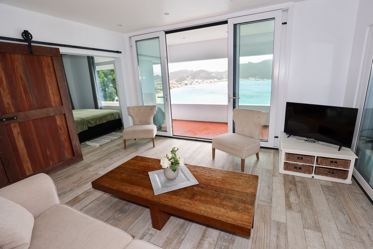 Wache mit einem atemberaubenden Panoramablick auf Philipsburg und Great Bay auf. Genieße deinen Morgenkaffee, während Kreuzfahrtschiffe in den Hafen gleiten, und lass dich von der erfrischenden Meeresbrise umhüllen. Diese zentral gelegene Unterkunft liegt nur wenige Minuten von Philipsburgs lebendiger Einkaufsszene, lokalen Supermärkten, Restaurants und einigen der besten Strände der Insel entfernt.