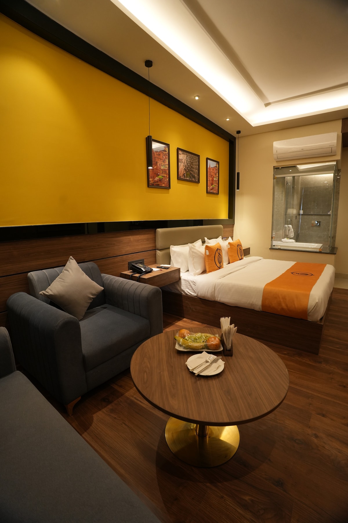 Enjoy a luxurious stay in our premium room with a relaxing bathtub. Perfectly designed for couples and corporate travelers, the room features a comfortable king size bed, modern interiors, Smart TV, high speed WiFi, and a clean attached bathroom. Unwind in a peaceful ambiance with all essential amenities for a comfortable and memorable stay.