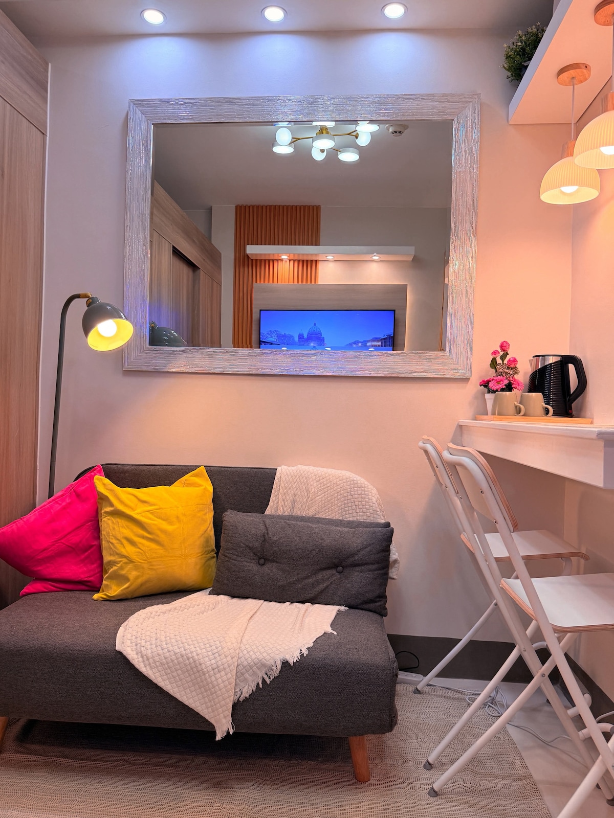 Komfortable und geräumige Unterkunft im Greenfield District Mandaluyong gegenüber der Shangrila Mall Genieße eine gemütliche, stilvolle Wohnung in der Nähe von Top-Attraktionen, Restaurants und Verkehrsmitteln. Perfekt für Alleinreisende oder Paare, mit einem bequemen Bett, einem Schlafsofa, einem 3-Sitzer-Sofa , einer voll ausgestatteten Küche und Highspeed-WLAN. Erkunde die Stadt und entspanne dich in einer einladenden Unterkunft - Budget-freundlich, ohne Kompromisse beim Komfort einzugehen! Die Wohnung befindet sich direkt gegenüber der ShangriLa Mall in Mandaluyong, wo alles zu Fuß erreichbar und bequem ist.