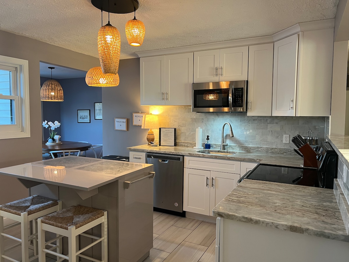 Ein schönes Haus auf der malerischen Mason's Island. Das Haus liegt nur wenige Fahrminuten von der historischen Innenstadt von Mystic entfernt. Verbringe deine Tage damit, die Stadt zu erkunden, bevor du am Ende einer ruhigen Sackgasse in deine Oase zurückkehrst. Das Haus mit 3 Schlafzimmern und 3 Bädern bietet viel Platz für dich, deine Familie und Freunde und verfügt über einen großen Garten mit Terrasse, Grill, Außenbereich und Esstisch, perfekt für Sommertage und -nächte. Unser Zuhause ist der ideale Ausgangspunkt nach Tagen am Strand, auf dem Wasser oder bei der Erkundung von Mystic.