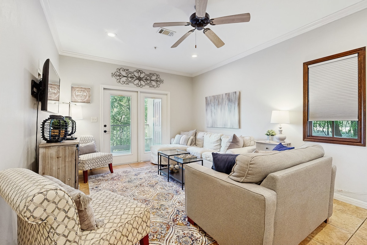 Moderne Eigentumswohnung am Comal River – 2 Schlafzimmer/2 Bäder, zu Fuß in die Innenstadt!