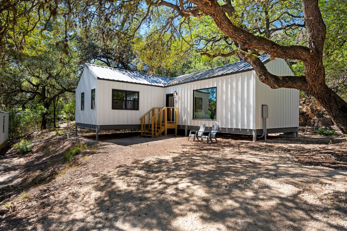 Cosette, oder „Little One“, ist der perfekte Rückzugsort für Paare mit allem, was du für einen romantischen Kurzurlaub benötigst. Das Cosette liegt 15 Fuß über einem trockenen Bach mit Blick auf das Texas Hill Country und ist der idyllische Ort für Gäste, die sich in Ruhe entspannen möchten. Nur ein paar Minuten vom Canyon Lake und dem Guadalupe River entfernt, ist dies der perfekte Ort für Abenteurer, die Tubing, Kajakfahren und Fliegenfischen mögen. Zu den nahe gelegenen Sehenswürdigkeiten gehören das White Water Amphitheater, die Gruene Hall und der Wasserpark Schlitterbahn!