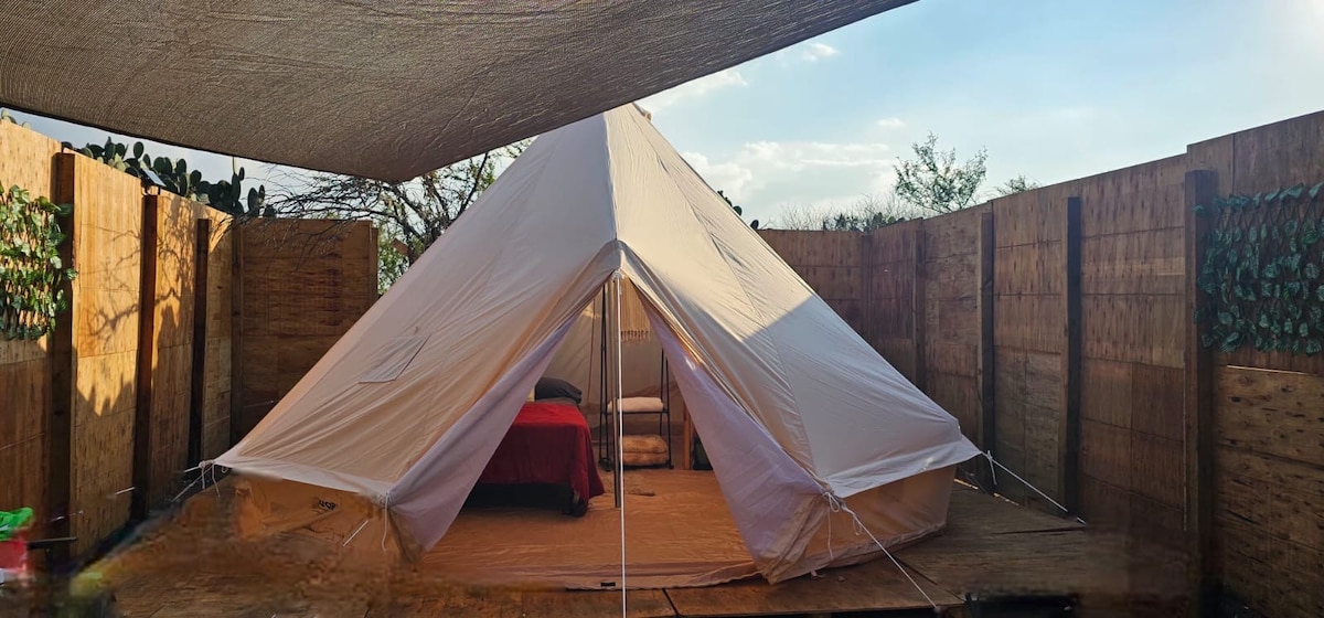 Descansa en Glamping Colón - Bernal, un espacio rodeado de naturaleza y tranquilidad, ideal para quedarte durante tu recorrido por la Ruta del Queso y el Vino, ya que se encuentra a solo minutos de viñedos, queserías y pueblos mágicos como Bernal y Tequisquiapan. Despierta con el canto de las aves y disfruta una caminata a campo abierto con tu mascota. Por la noche, contempla el cielo estrellado junto a la fogata. Este alojamiento combina la comodidad moderna con el encanto del campo.