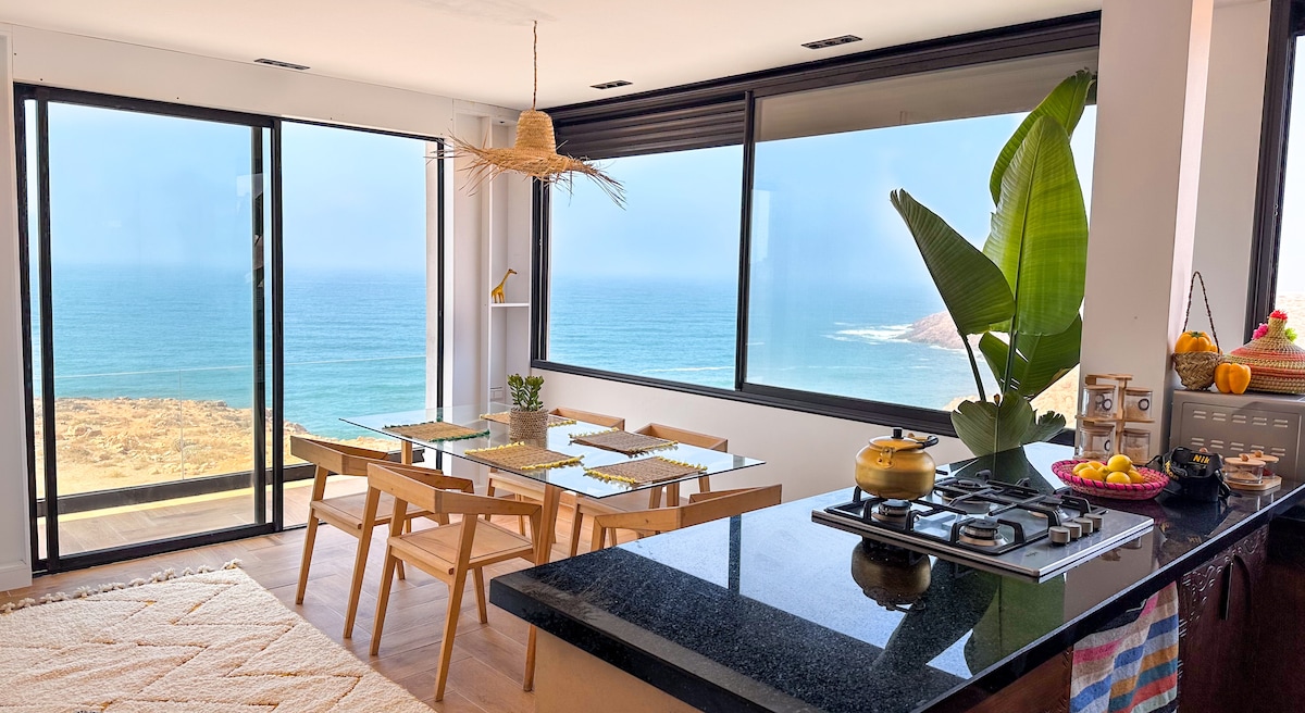This stunning beach house is perfect for those who are looking for an independent stay at one of the most mesmerising spots in Morocco. Stylish and spacious four bedroom, four bathroom property with scenic views of Atlantic Ocean and direct access to a red Legzira beaches.