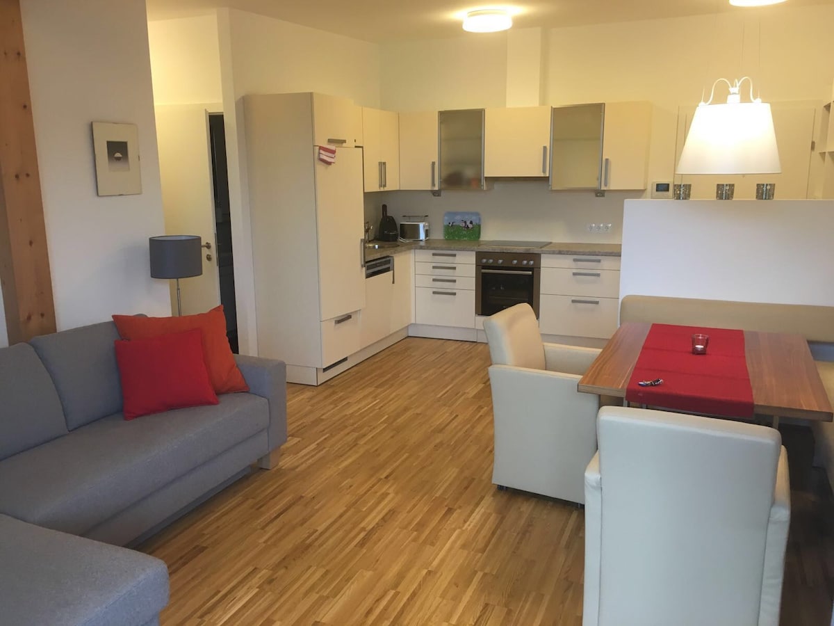 Sommercard Das Appartement liegt im Parterre und besteht aus 2 Schlafräumen Bad mit WC , Küche und bietet Platz für 4 . Das 1. Schlafzimmer hat Komfortbetten mit elektrisch verstellbaren Lattenrost. 10 Min. ins Stadtzentrum, Lebensmittelmarkt, Hallenbad mit Sauna in unmittelbarer Nähe. Autos können auf dem Grundstück parken. Brötchenservice oder im Ort frühstücken (Sattlers, Steffl Bäck) Biete Schidepot für 2 Personen in der Gondelstation Kosten 10 EURO pro Tag Hunde sind gerne Willkommen.